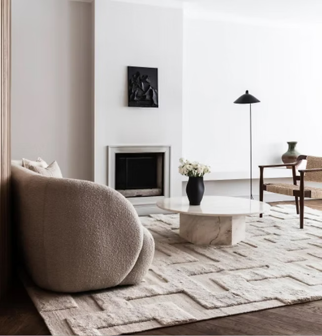 Measure Again!: Just like with furniture, measure your space and tape out the potential rug size to ensure it complements the room's proportions.
