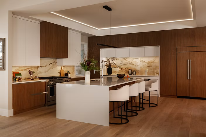 Contemporary kitchens, often featuring European designs and appliances, are directly impacted by recent tariffs, leading to increased costs for these sought after elements. Design by DFI Interiors
